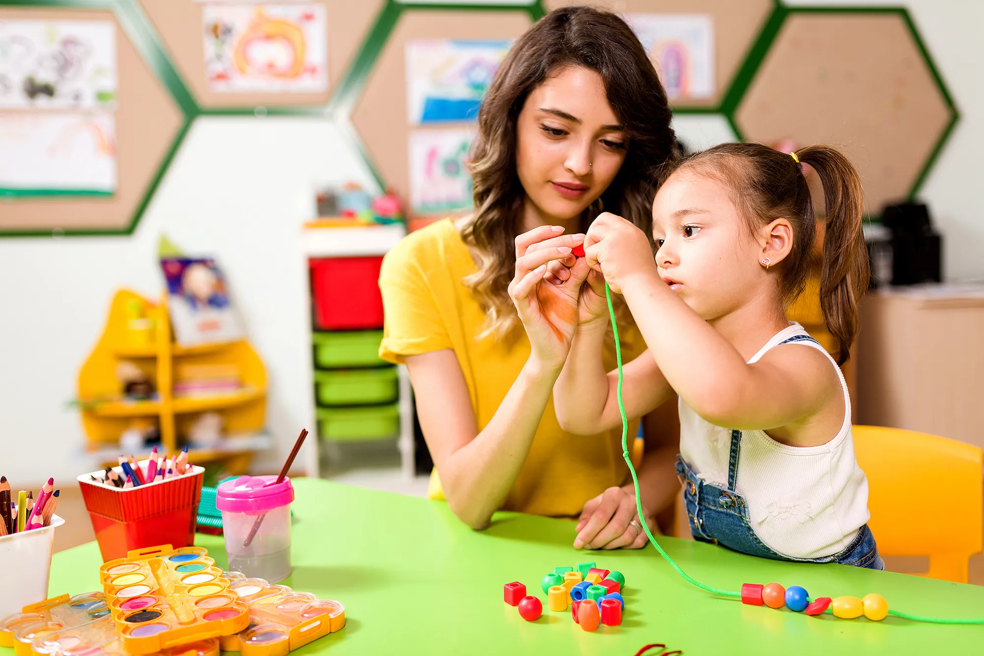 coordination improved as she participated in engaging tasks such as stringing beads and stacking blocks, supported by her Occupational Therapist.
